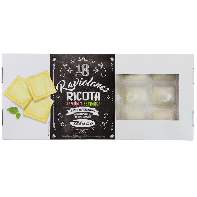 Raviolones DISCO ricota, jamón y espinaca 380g. Producto de calidad.