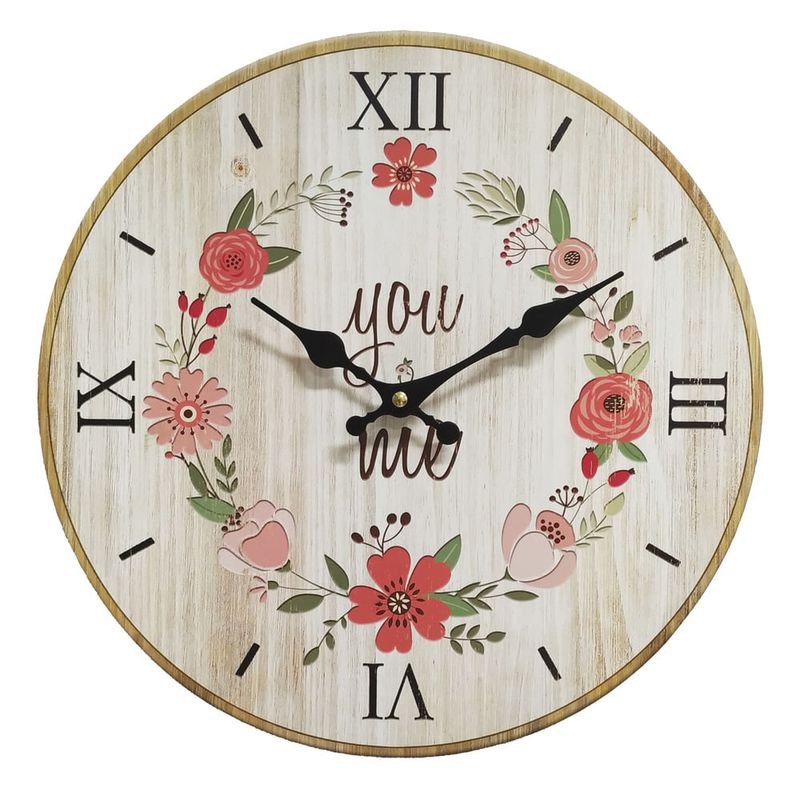 Reloj de pared 34 cm estampado flores, producto de excelente calidad.