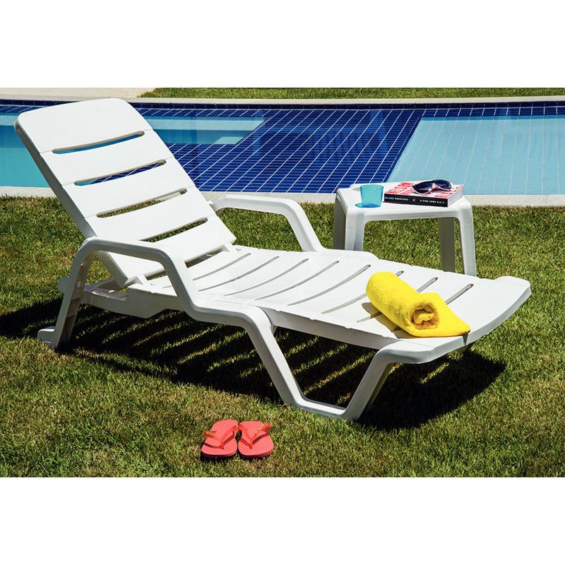Nada como descansar junto a la piscina y disfrutar de un delicioso sol después de la intensa rutina del día, ¿no? Para eso, cuente con la reposera Tramontina Leblon en polipropileno blanco. Versátil y resistente, se reclina hasta en 4 posiciones y te garantizará mucha más practicidad, ya que sus ruedas te permiten colocarlo en el lugar que prefieras, sin tener que hacer mucho esfuerzo. ¡Aproveche al máximo su día y no se olvide de Tramontina!