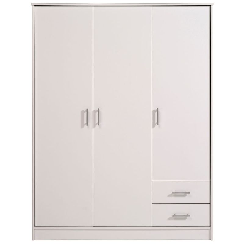 Aprovechá el espacio al máximo con este excelente ropero de 3 puertas y 2 cajones! Cuenta con perchero y estantes distribuidos de manera tal que podrás tener toda tu ropa perfectamente organizada. Este ropero está construido con los mejores materiales cuidando los detalles de terminación. Su diseño minimalista y elegante en color Blanco hace que se integre perfectamente a tu habitación. Este artículo se vende en caja, el armado no está incluido, usted puede contactar a un armador externo llamando a nuestro servicio de Atención al Cliente. El artículo ofrecido es el que corresponde a la descripción, cualquier accesorio es meramente ilustrativo.