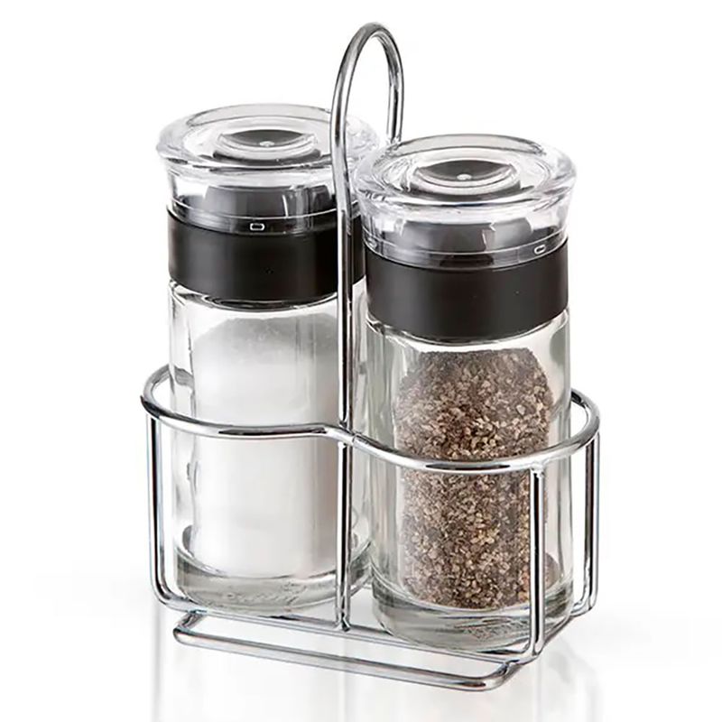 Salero y Pimentero de vidrio con soporte de metal 50 ml