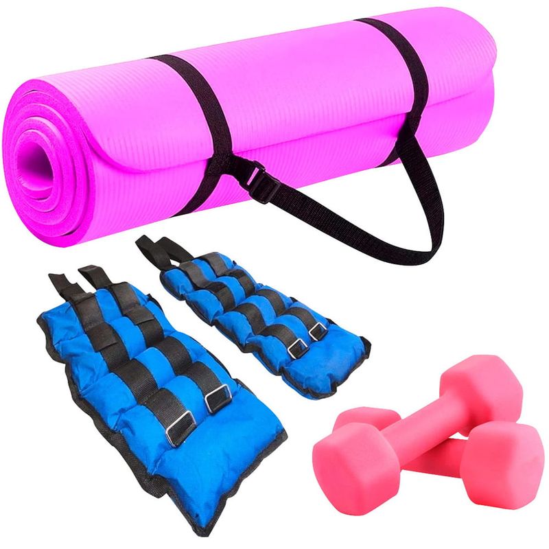 Set 2 mancuernas 1 kg + par tobilleras 1 kg+ yogamat 10 mm