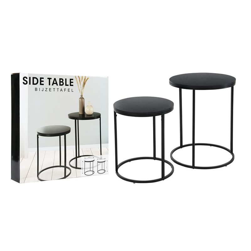 MueblesMuebles de interiorLiving y estarSet de mesas bajas en madera y metal negro