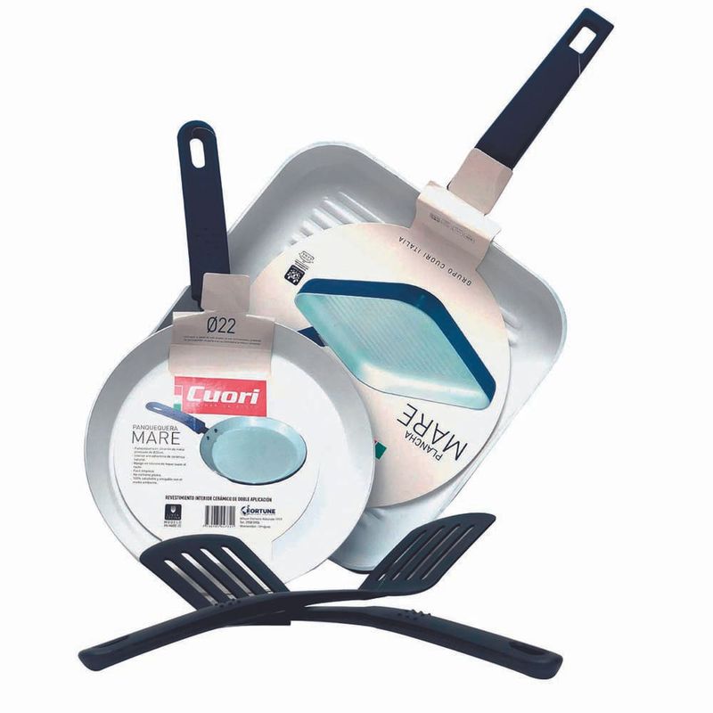 Set de plancha 26 cm, panquequera 22 cm y 2 espátulas