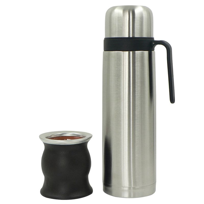Este set incluye un termo de acero inoxidable de alta calidad y una mate de cerámica forrada en simil cuero, perfecto para disfrutar de bebidas calientes en cualquier momento y lugar. Colores no a elección.