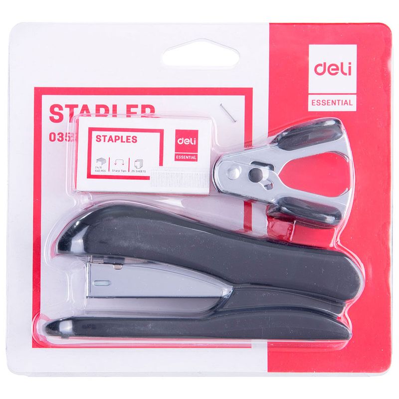 Set DELI abrochadora + sacabroche + broches 640 un.