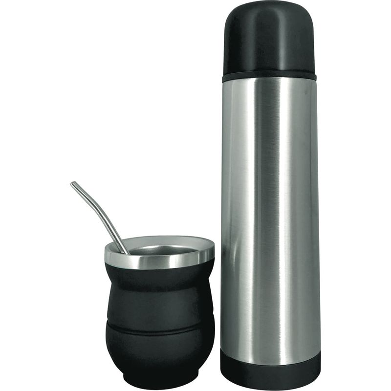 Set mate con bombilla y termo 500ml negro