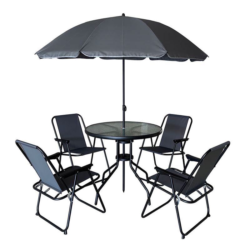 Set para jardín 4 sillas+mesa+sombrilla gris oscuro