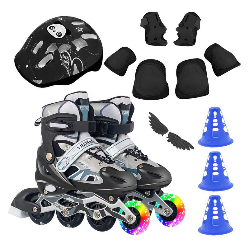 El set de rollers de aluminio T.m incluye 6 protecciones y un bolso para transportarlos cómodamente. Ideales para una experiencia segura y divertida sobre ruedas, con un diseño resistente y ajustable para adaptarse a diferentes tamaños