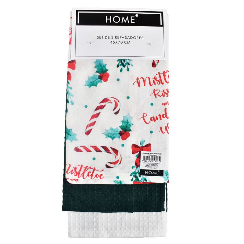 Set x 3 Repasadores 45 x 70 cm Blanco liso / Estampado