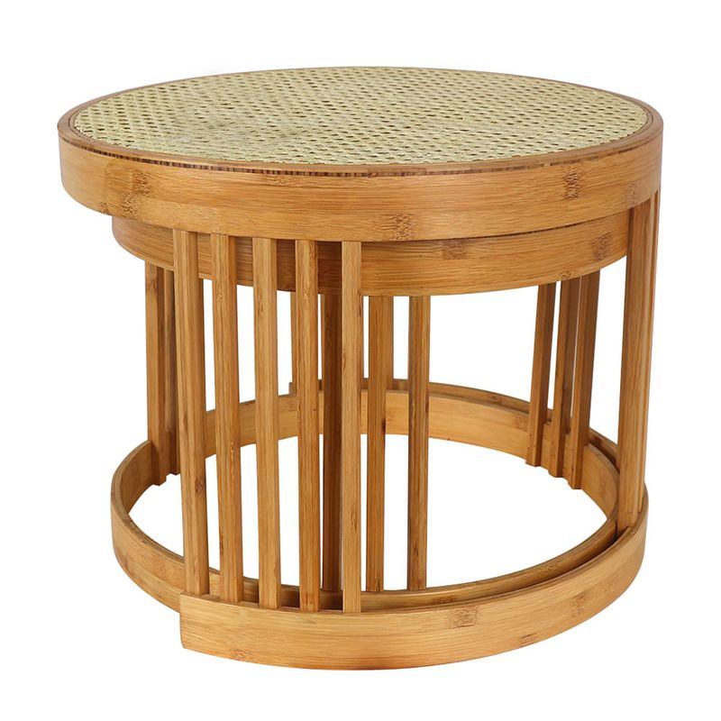 Este set de 2 mesas auxiliares combina madera y ratán para ofrecer estilo y funcionalidad. Ideales para cualquier espacio, son perfectas para sostener libros, bebidas o decoraciones, añadiendo un toque natural a tu hogar.