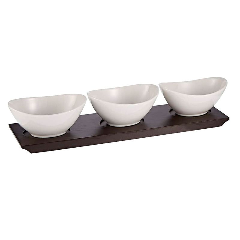 Set de 3 bowls con bandeja de cerámica blanca de 12 cm: Elegancia y versatilidad para servir tus platos con estilo
