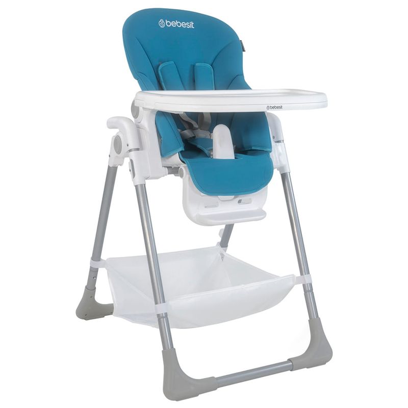 3 Posiciones de reclinado, 6 Posiciones de altura, 4 Ruedas giratorias 360º con frenos independientes, doble bandeja: Bandeja Desmontable y ajustable en 3 posiciones, canasto.