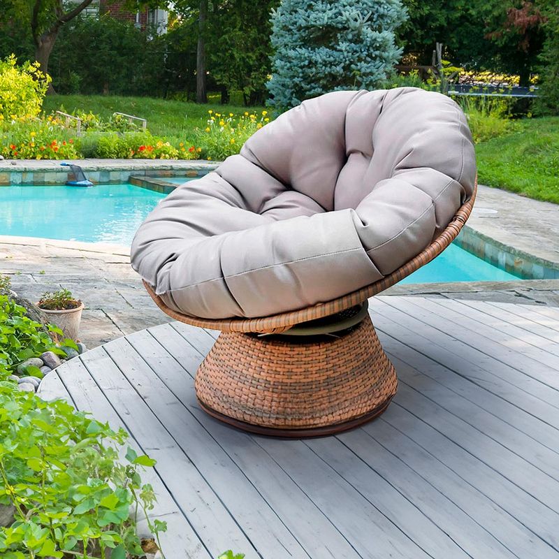 Sillón de ratán con almohadón gris de 86 cm. Diseño moderno y confortable para disfrutar de tus momentos de relajación y descanso. Dale un toque natural y acogedor a tu espacio.