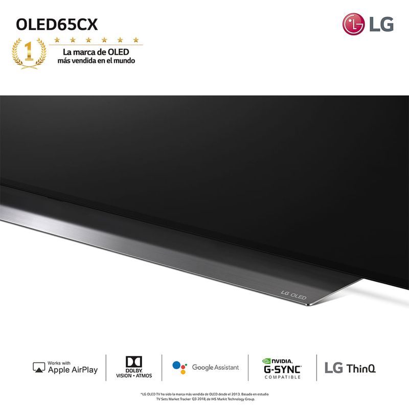 La TV LG OLED es única gracias a su tecnología de autoiluminación. Los más de 100 millones de subpíxeles con autoiluminación* se unen para ofrecer lo que se viene en cuanto a TV. Disfruta de los negros más oscuros, los colores más intensos y la calidad de imagen más realista._x000D_ _x000D_ AUTO-ILUMINACIÓN DE PÍXELES_x000D_ El poder de la Auto-iluminación de Píxeles_x000D_ LG OLED TV es único gracias a su tecnología de auto-iluminación. Más de 100 millones de sub pixeles* con iluminación propia se unen para ofrecer el siguiente nivel de TV. Disfruta de los negros más profundos, los colores más ricos y la calidad de imagen más realista._x000D_ _x000D_ 4K Procesador Inteligente a9 Gen3 _x000D_ Una experiencia televisiva evolutiva_x000D_ Con algoritmos de aprendizaje profundo, el procesador inteligente a9 Gen3 analiza el contenido en la pantalla para ofrecerlo de la forma más inmersiva. Todos los ajustes son automáticos, mejorados para ofrecer la mejor imagen y sonido, para hacer que cada experiencia sea espectacular._x000D_ _x000D_ Un salto hacia adelante para las TV_x000D_ Transforma tu TV en un modo central con la inteligente ThinQ AI. Te permite controlar de forma sencilla tu ecosistema de Internet de las cosas para el hogar con reconocimiento de voz natural. La TV LG OLED hace que tu vida sea mucho más práctica._x000D_ _x000D_ Disfruta de imagen y sonido masterizados por profesionales_x000D_ Mira películas como deberías hacerlo: de forma absolutamente impresionante. Dolby Vision IQ ajusta de forma inteligente el brillo, color y contraste de la pantalla según el género de contenido y las condiciones de iluminación. Dolby Atmos ofrece una experiencia de audio inmersiva para que disfrutes de todos los contenidos al máximo._x000D_ _x000D_ MODO FILMMAKER™_x000D_ Mírala como lo haces en el cine_x000D_ El procesador ajusta automáticamente la imagen y apaga el suavizado de movimiento para obtener el efecto de imagen en movimiento completo. Mira películas con la intención creativa y la experiencia cinematográfica preservadas. Disfruta de todos tus contenidos a nivel cinematográfico y siente toda la intención artística de las películas. Escúchalo de los expertos en la industria._x000D_ _x000D_ Juego HDR más inmersivo_x000D_ HGiG ofrece los gráficos de juego que mejor se adaptan a las especificaciones de la TV identificada y a los niveles de rendimiento de tu TV. Con LG OLED, elije de una amplia variedad de juegos con la confianza de que tu TV mostrará cada juego de la mejor manera posible._x000D_ _x000D_ Mira cada movimiento en detalle_x000D_ Es importante evitar la imagen residual (movimiento borroso) a toda costa cuando se miran deportes. Ahora, con la función OLED Motion Pro, capta cada movimiento rápido y sutil de los jugadores sin aspecto borroso en tu TV. Con LG OLED, no tienes que preocuparte por el aspecto borroso del parpadeo.