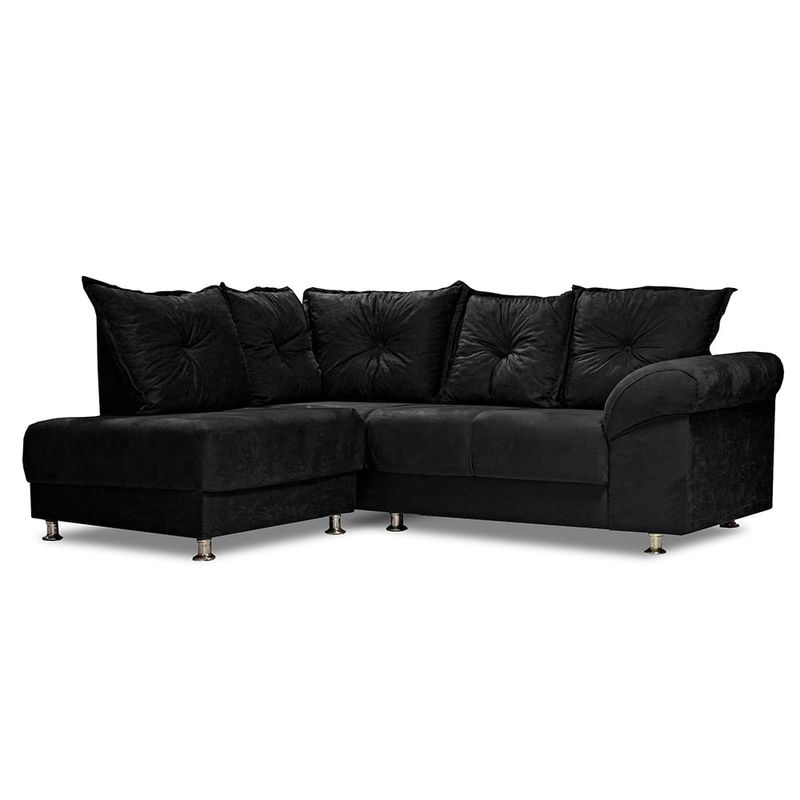 Sofá esquinero negro de 200x77x85 cm, elegante y acogedor. Su diseño contemporáneo y su tela simil gamuza brindan comodidad y estilo a tu espacio.