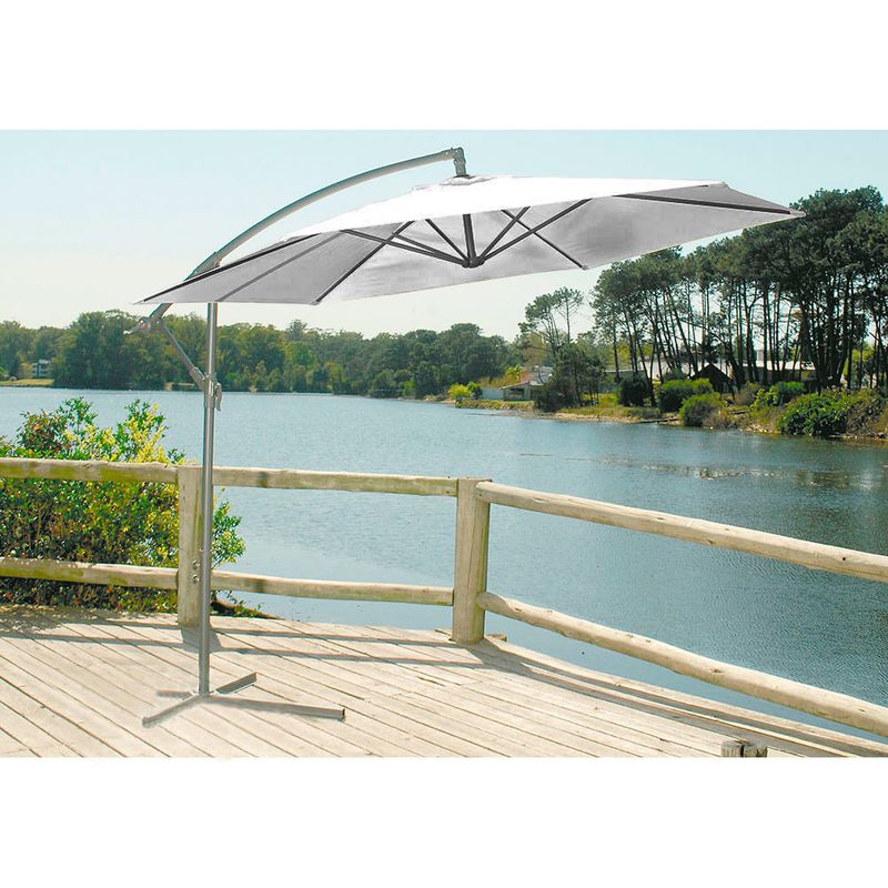 Disfrutá de una agradable sombra en tu jardín! Esta hermosa sombrilla colgante te ofrece practicidad y comodidad, ya que su sistema descentrado evita que la estructura de la sombrilla quede en el centro de la reunión, en este caso se eleva discretamente por detrás haciendo que la sombrilla se ubique en el lugar perfecto para generar la sombra que necesitas. Además cuenta con un práctico sistema para poder dar inclinación generando así una sombra perfecta a cualquier hora del día. Su estructura asegura gran durabilidad y se verá siempre como nueva. Cuando ya no necesite usarla solo deberá girar la manivela y quedará discretamente plegada ocupando el mínimo espacio.. El artículo ofrecido es el que corresponde a la descripción, cualquier accesorio es meramente ilustrativo. Le informamos que los gazebos y sombrillas no son aptos para vientos y/o lluvias abundantes. SIN BASE INCLUÍDA