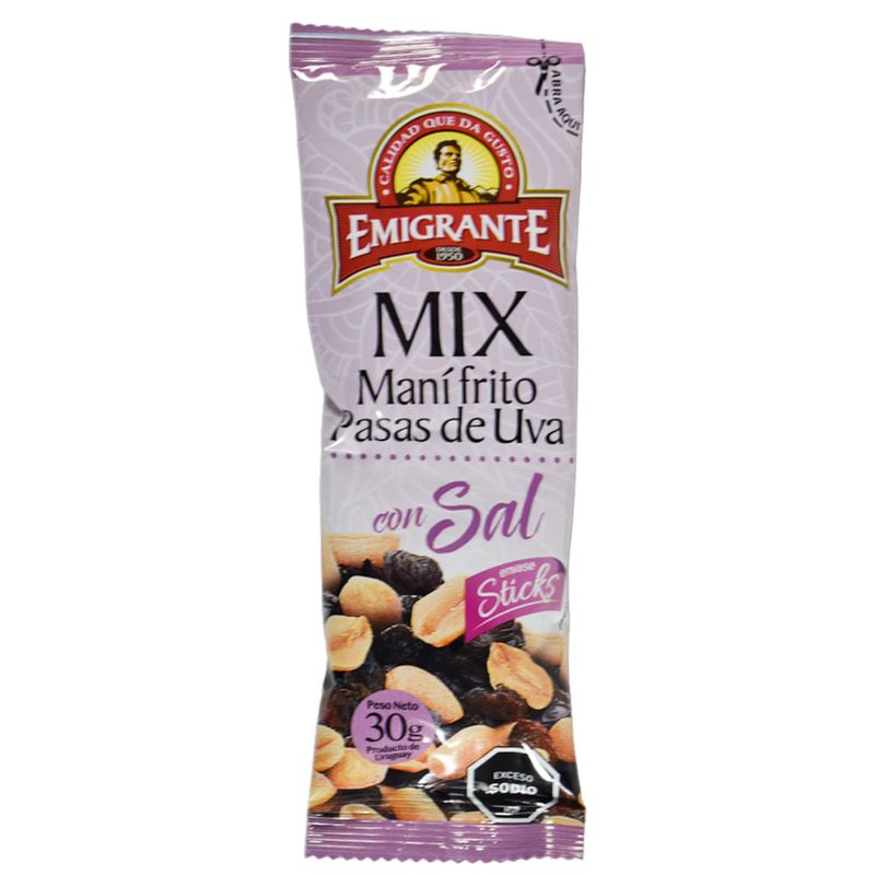 El stick mix Emigrante de maní con sal y pasas de 30g es una combinación perfecta de sabores. El maní salado y las pasas dulces se complementan para brindarte un snack equilibrado y delicioso. Disfruta de esta mezcla única en cualquier momento y lugar, ideal para satisfacer tus antojos con un toque de dulce y salado.