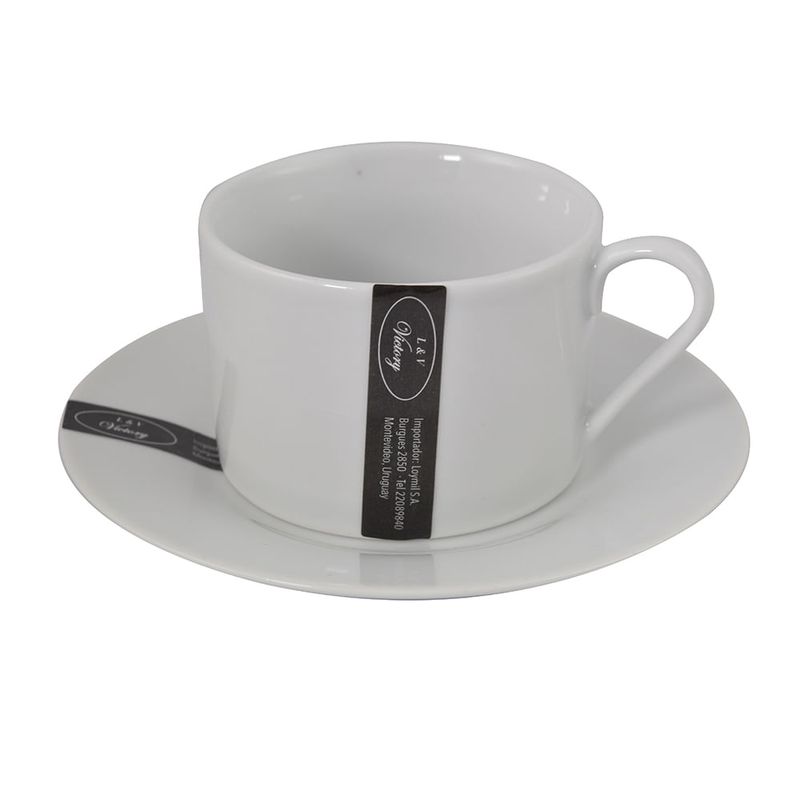 Taza té 220 ml con plato cerámica blanco. Producto de calidad.