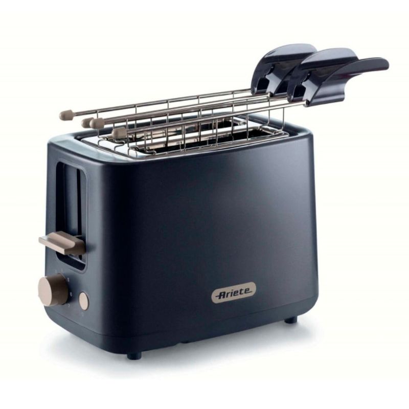 La Tostadora ARIETE 157 Mod. 760W es un electrodoméstico de color gris con un diseño elegante. Cuenta con una potencia de 760W para tostar pan de manera rápida y uniforme. 7 Niveles de tostado. Incluye ranuras anchas, regulador de temperatura y función de calentamiento. Es compacta, robusta y fácil de usar y limpiar.