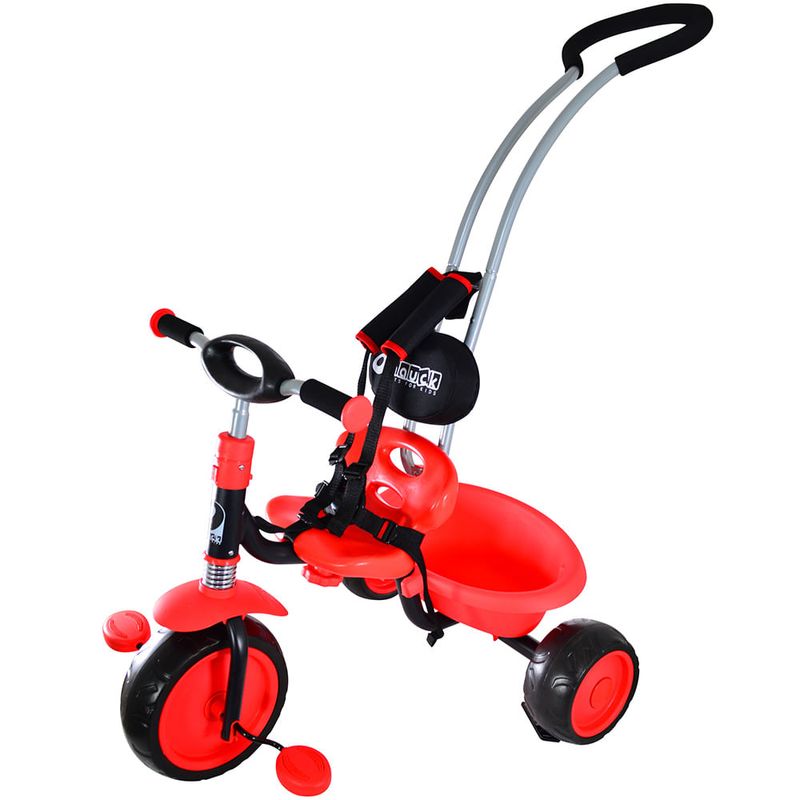 Triciclo con guía ¡Ideal para los más pequeños de la casa! Excelente para desarrollar la imaginación y fomentar el juego en equipo ya que los pequeños podrán jugar solos o compartirlo con sus amigos. Este juguete es fabricado con materiales de excelente calidad. Ideal para regalar en cualquier ocasión.
