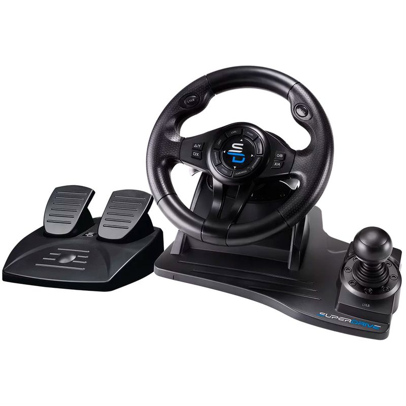 El volante SUPERDRIVE GS550 es ideal para PS3, PS4, Xbox, PC y Switch, garantizando precisión y respuesta en juegos de carreras. Equipado con pedales y diseño ergonómico, ofrece una experiencia de conducción envolvente y realista para entusiastas.