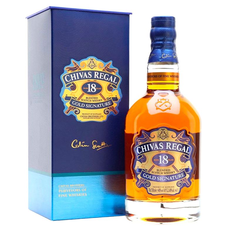 Chivas Regal 18 años es una mezcla añejada premium de algunos de los mejores whiskies de Escocia con una proporción de malta superior a la media y un período de envejecimiento prolongado que produce una mezcla verdaderamente fina.