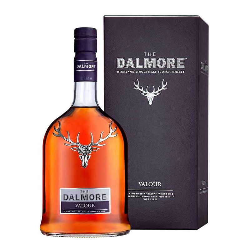 The Dalmore Valour es una mezcla de tres acabados diferentes de barril, con una maduración inicial en barricas de Bourbon de roble. Posteriormente ha pasado por barricas de jerez y se ha finalizado en barriles de Oporto. Nariz: La malta es muy evidente en este whisky. Es algo dulce, aunque no demasiado. Encontraremos ciruelas y mermelada de naranja acompañado de arándanos, frutos secos y chocolate. Boca: En primer lugar encontraremos malta acompañada del dulzor frutal de la naranja. A continuación se van desvelando notas de frutos del bosque, miel, caramelo y vainilla. Es muy cremoso y elegante.