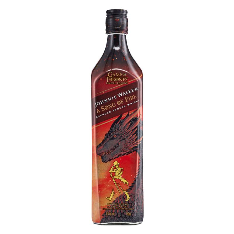 El fuego consume todo lo que toca. Derrite el acero para forjar la cuchilla más afilada y mortal. El fuego corre por las venas de la Casa Targaryen y se hace carne en forma de dragones. Con fuego en la sangre, los dragones de Targaryen respiran llamas feroces. Como un fuego abrasador, rugen sus versos en una canción de hielo y fuego. Johnnie Walker A Song of Fire es un blend inspirado en estas criaturas del cielo. Un sabor de cuerpo completo ofrece frutas rojas sutiles, un toque de especias y humo dulce. Este whisky escocés se disfruta mejor si se consume a temperatura ambiente.
